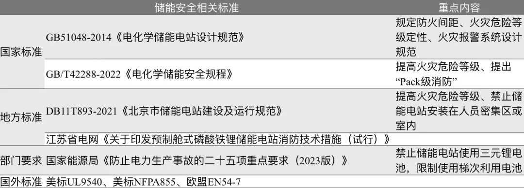 与此同时,住建部也针对GB51048标准进行了修订,发布了GB51048-2022征求意见稿,并于2023年底完成修编,送审稿中显著提高了储能电站的火灾危险等级定性,强调了锂电池厂房的独立布置等安全措施。