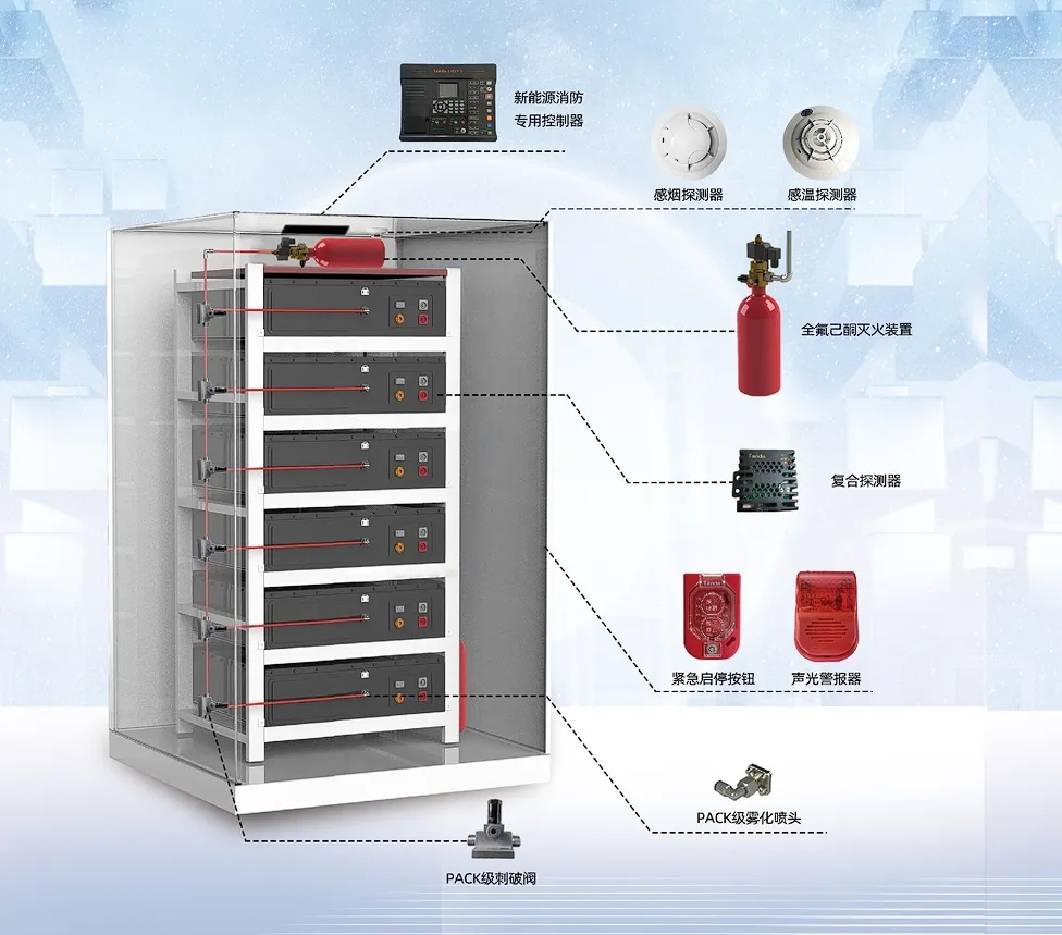 此外,国家标准层面也在积极推进储能电站的安全消防工作。2022年12月发布的新国标《电化学储能电站安全规程》(GB/T 42288-2022)征求意见稿,于次年7月1日正式实施,该标准创新性地提出了精准预警和消防要求,特别是强调了电池室/舱应配置自动灭火系统,且自动灭火系统的最小保护单位宜为电池模块,以实现对火灾的迅速响应和有效控制。