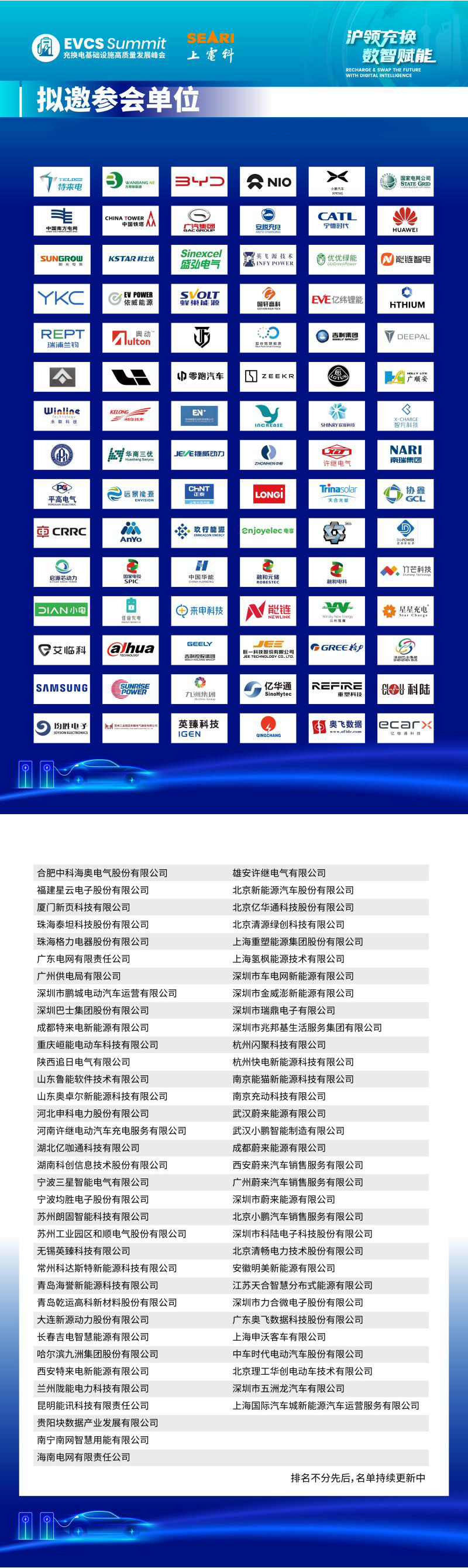 峰会邀请全国充换电运营企业决策层与运营负责人、地方能源与交通主管部门、电网公司、充电设备制造商、平台技术服务商、投资机构及行业研究机构等产业链核心代表。拟邀单位包括: